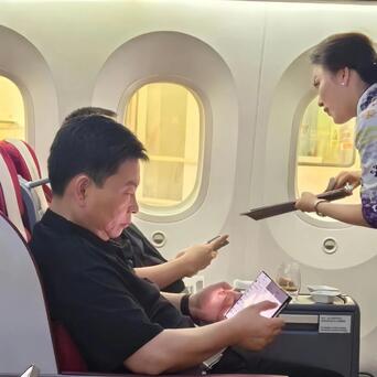 华为三折叠这真机效果大伙觉得如何? 余承东手拿华为的三折叠屏手机出差
